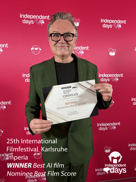FIRST GERMAN AI FESTIVAL AWARD at the 25th International Film Festival in Karlsruhe. I am incredibly thrilled that the two AI films “Imperia” by director Marcel Barsotti and “Beyond the Screen” by director Gyumin Kim were honored with the Achievement More